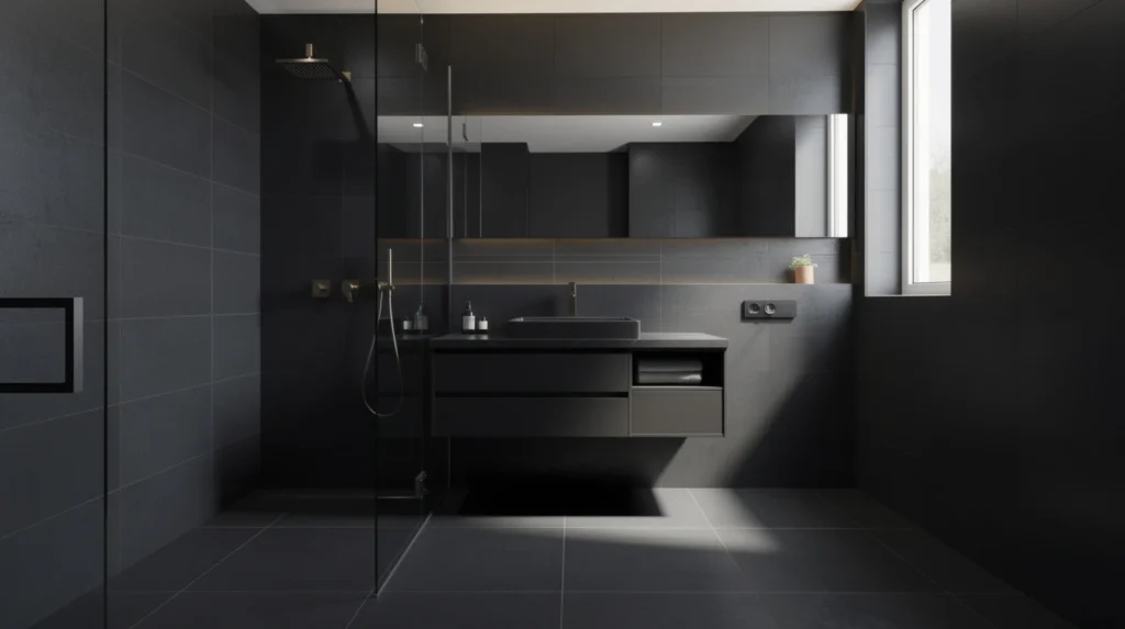 Matériaux et finitions : réussir la salle de bain noire
